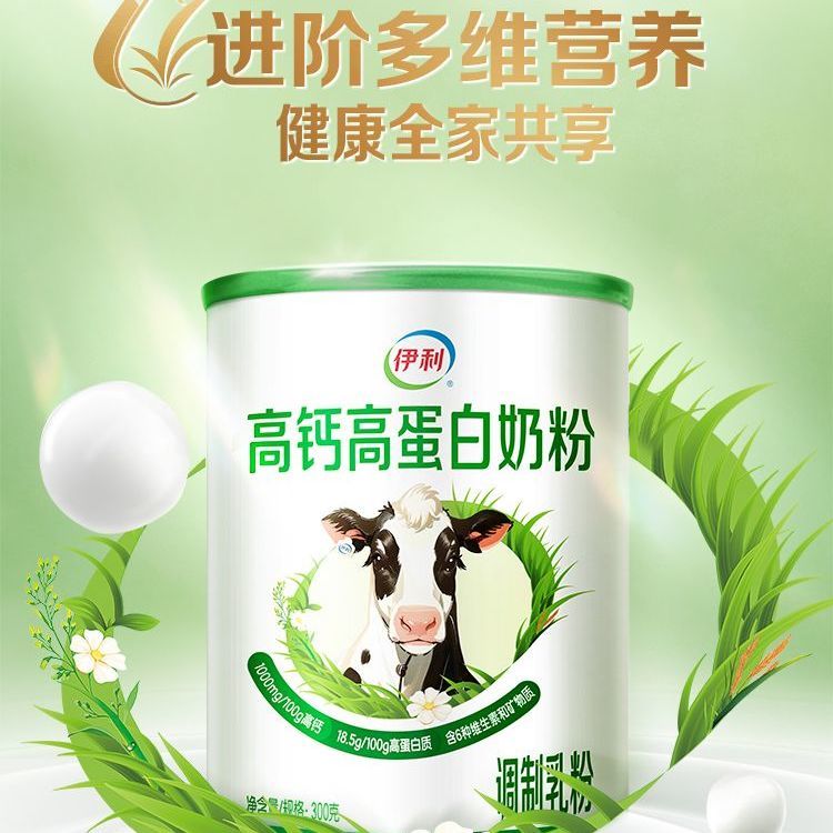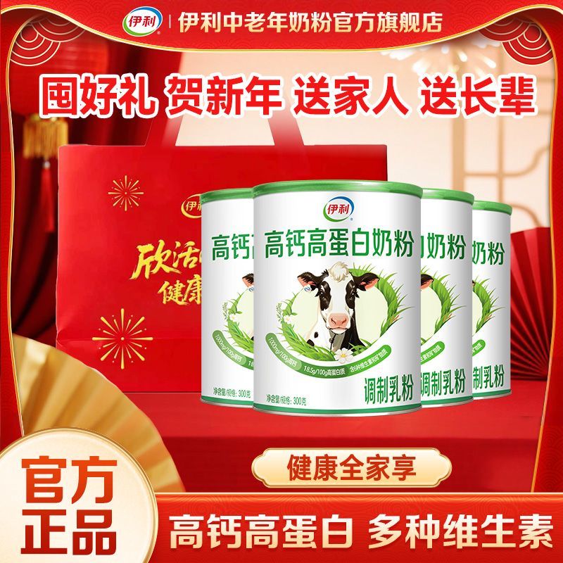 【礼袋装】伊利高钙高蛋白奶粉全家牛奶粉300g/罐维生素早餐冲泡