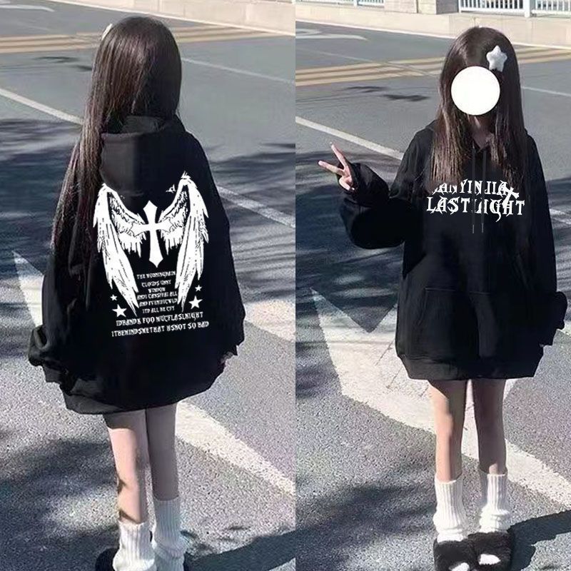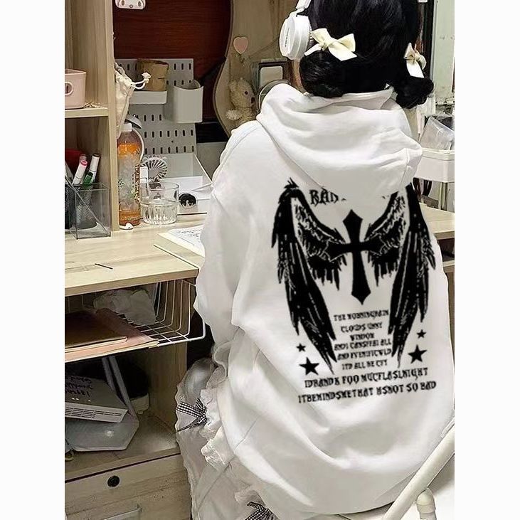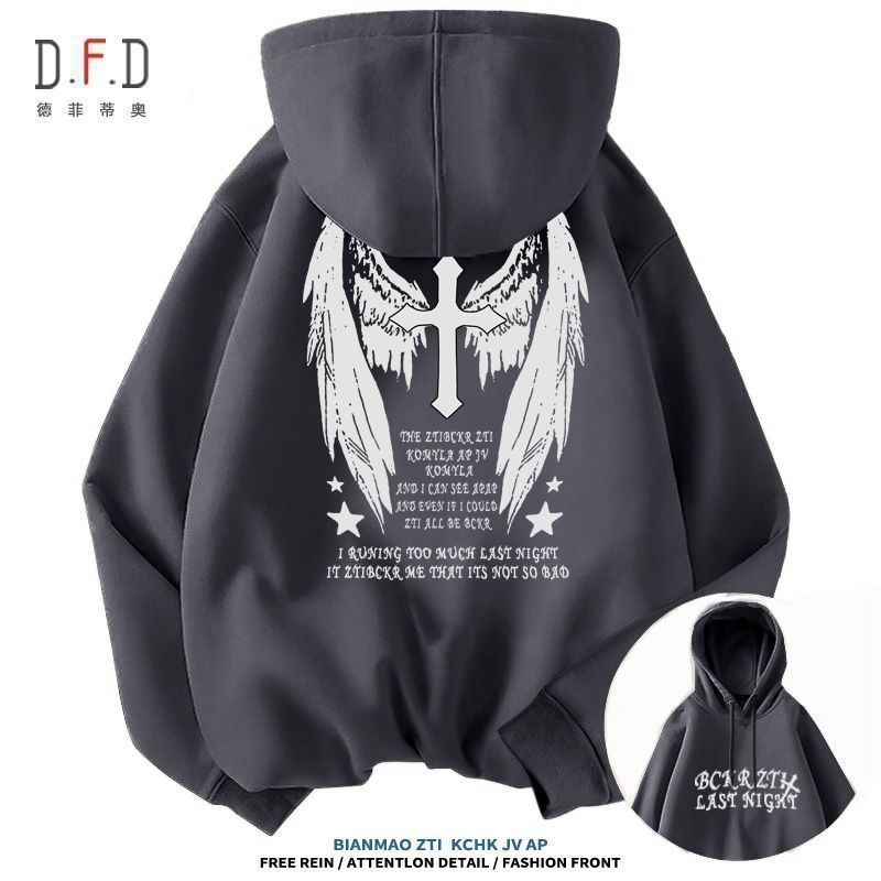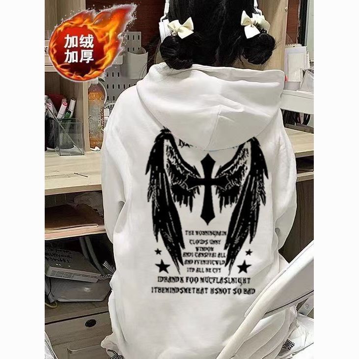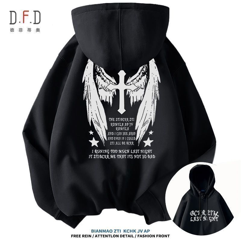 街头vibe十字架翅膀连帽卫衣男女秋冬ins风嘻哈小个子潮宽松外套