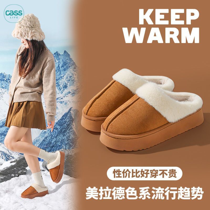 佳适棉拖鞋女士居家家用防滑保暖舒适棉拖情侣款毛绒磨砂棉拖鞋