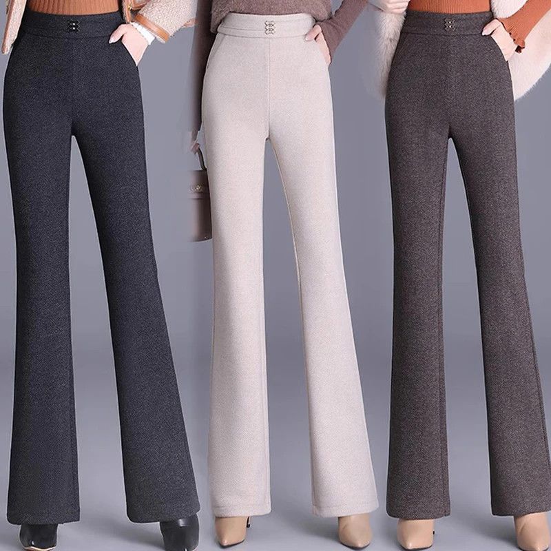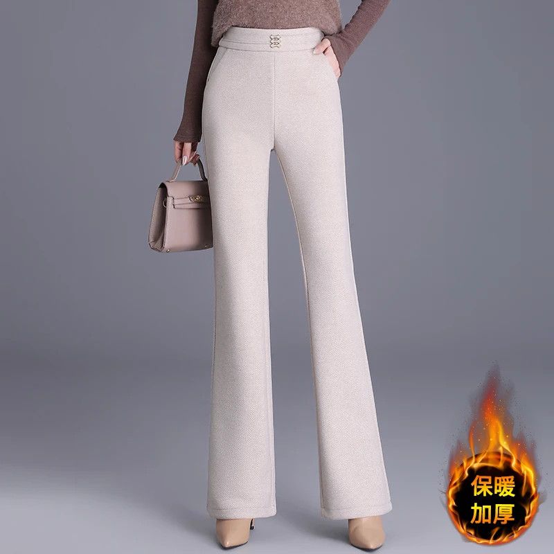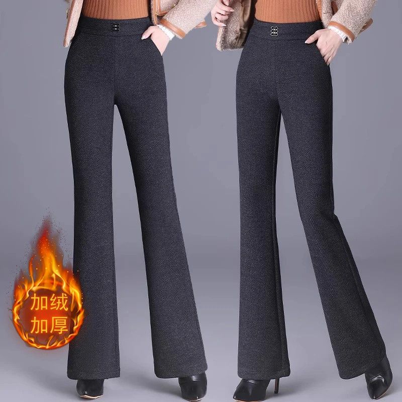 2025加厚微喇裤秋冬高腰新款加绒时尚显瘦休闲喇叭裤裤子