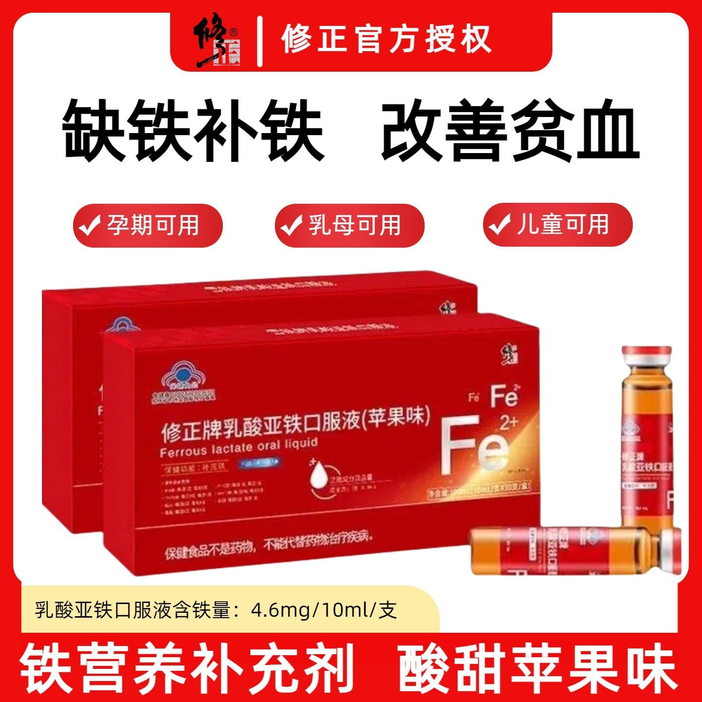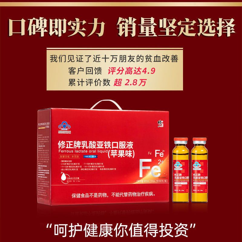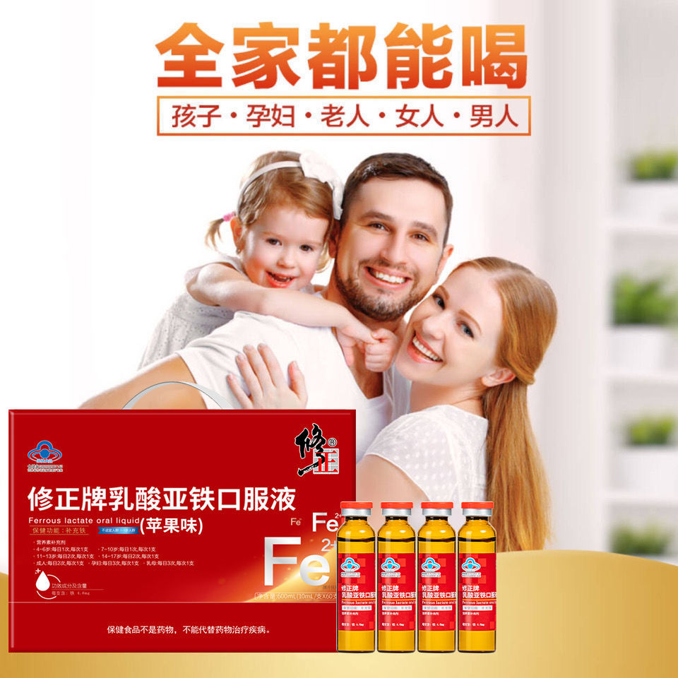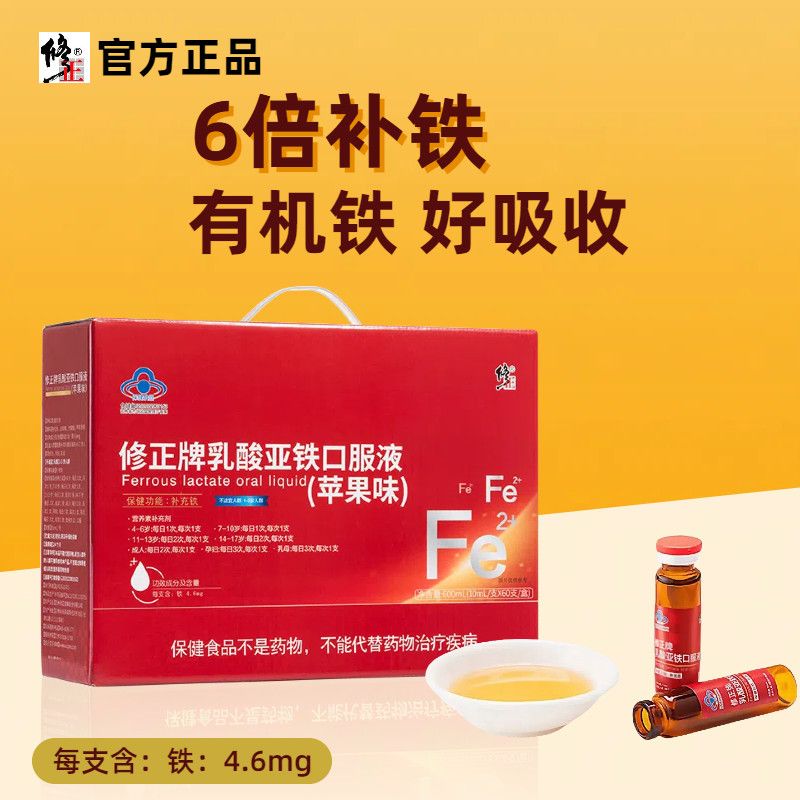修正乳酸亚铁口服液成人男女孕妇青少年缺铁补铁改善贫血头晕乏力