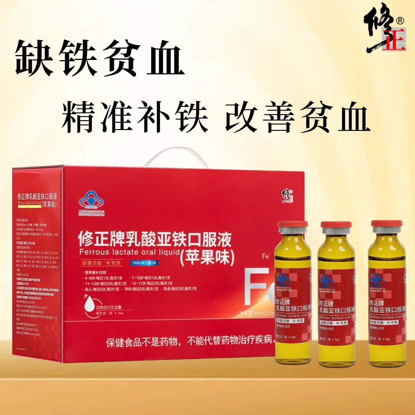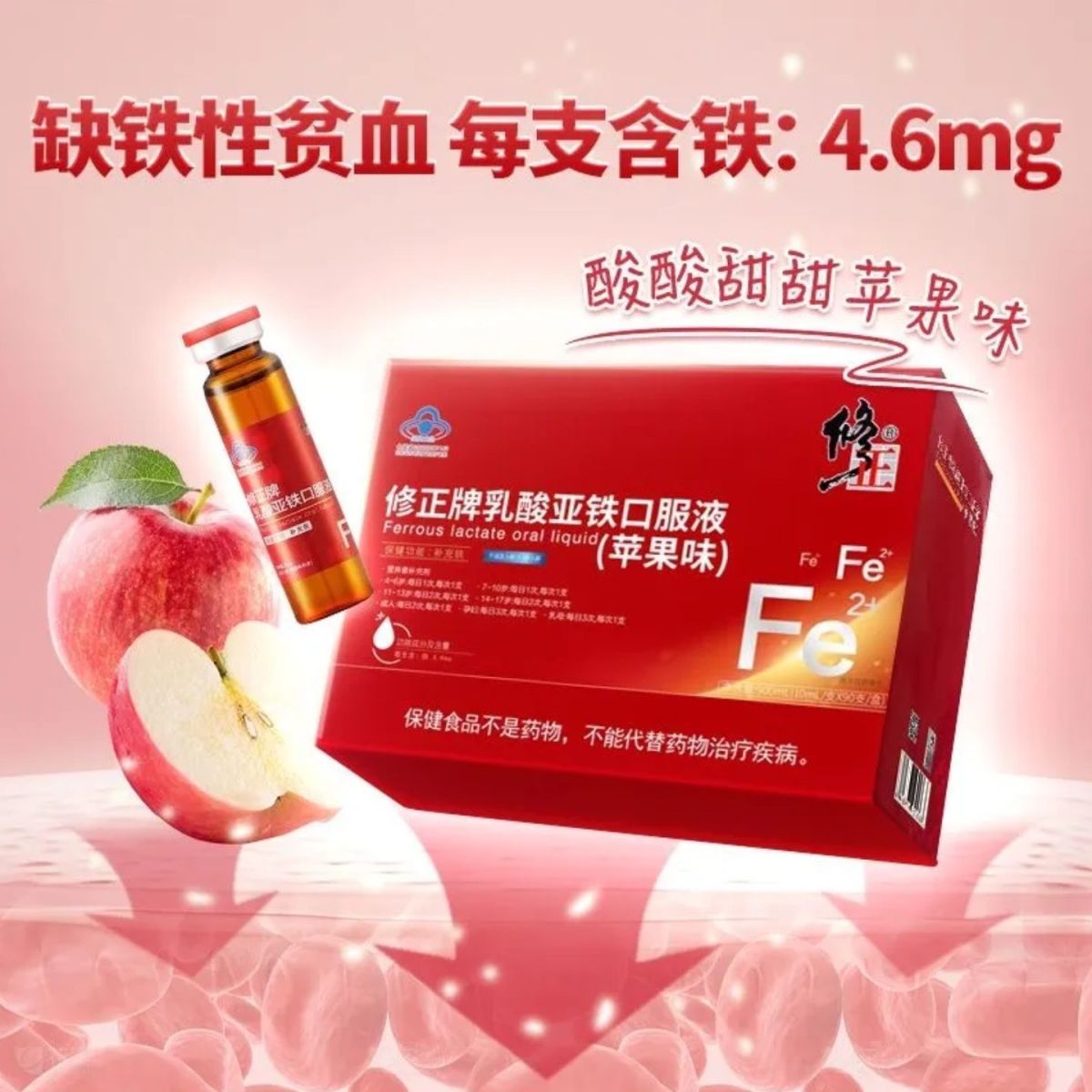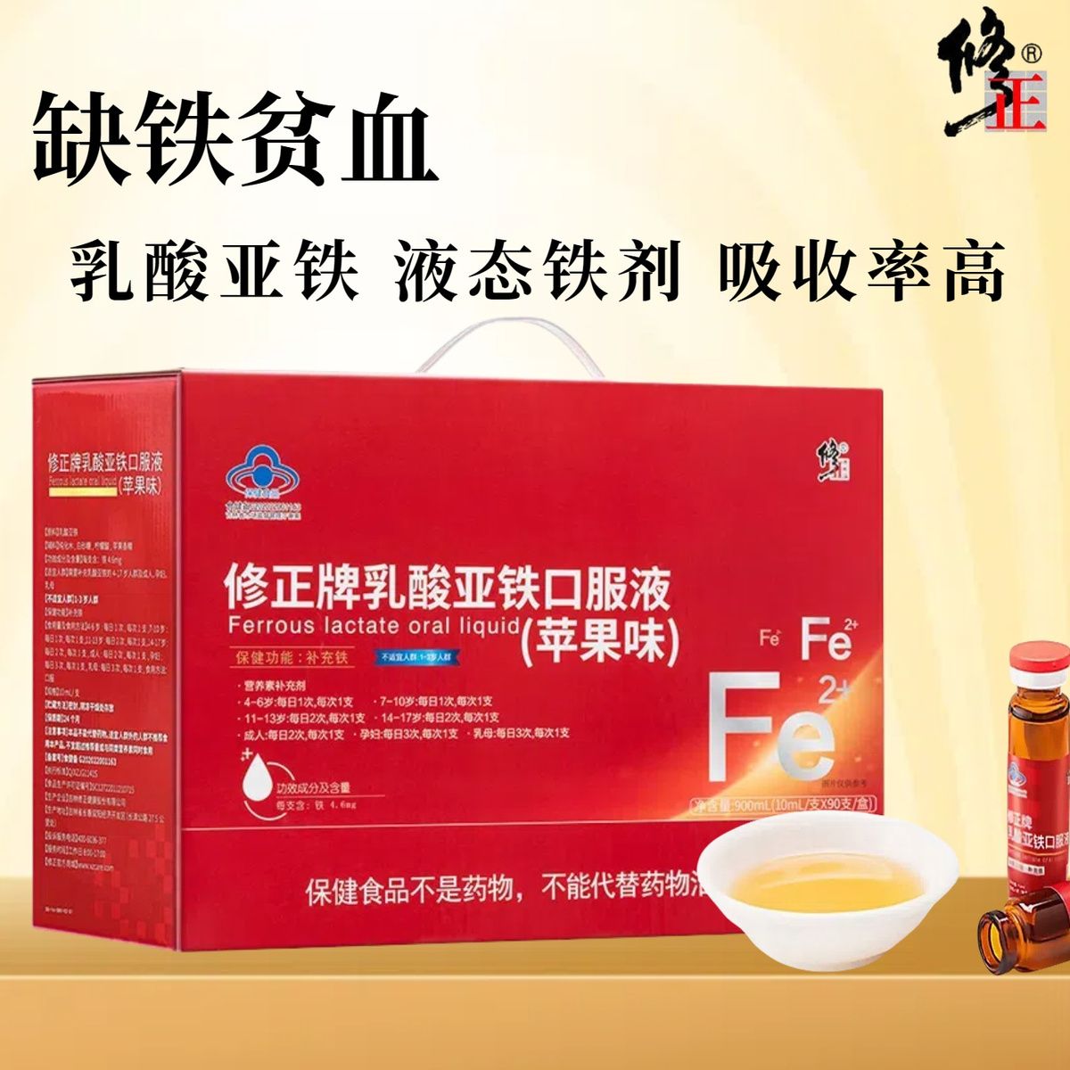 修正乳酸亚铁口服液成人男女孕妇青少年缺铁补铁改善贫血头晕乏力