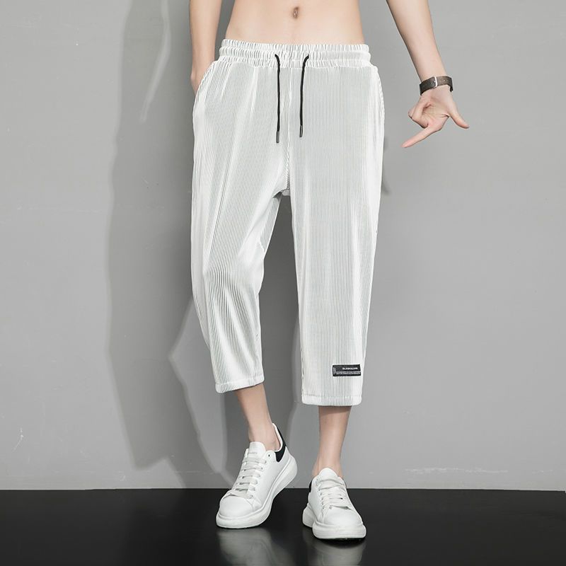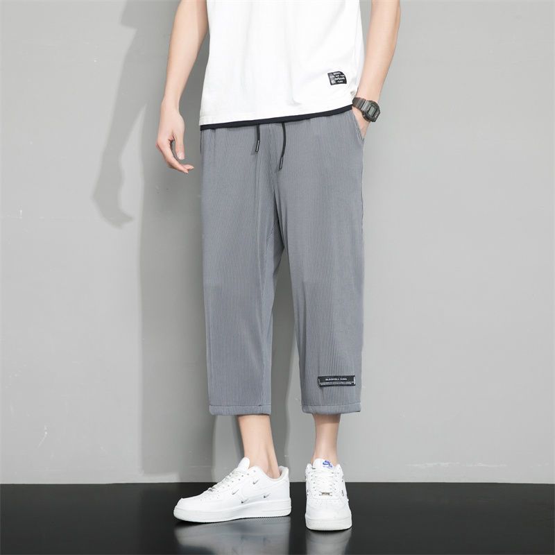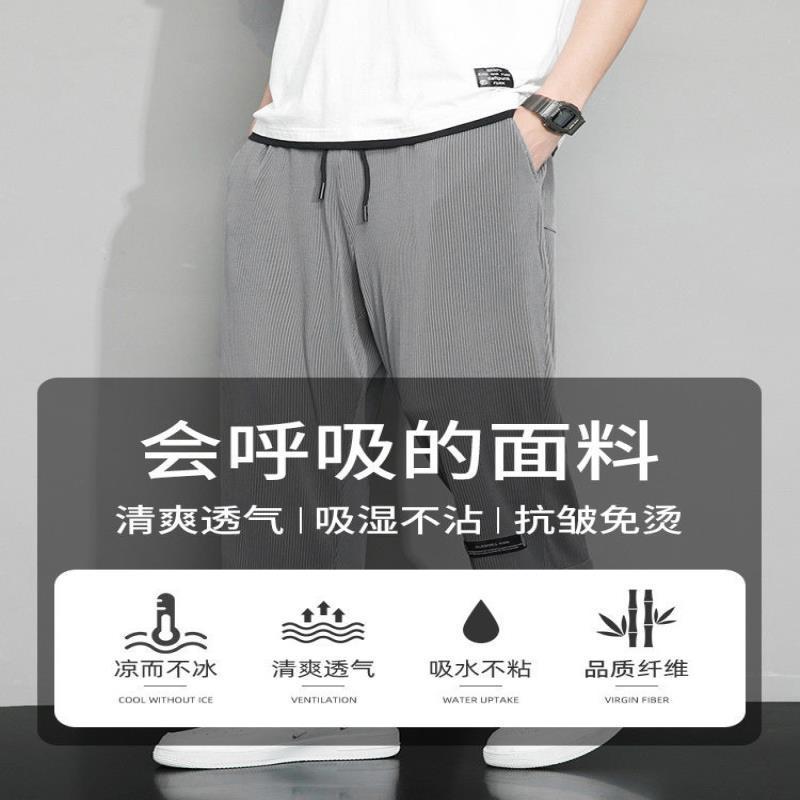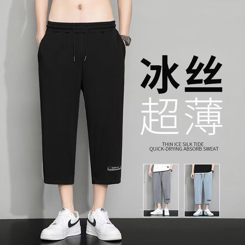 冰丝七分裤男士夏季薄款透气弹性运动裤子男宽松大码高弹7分裤男