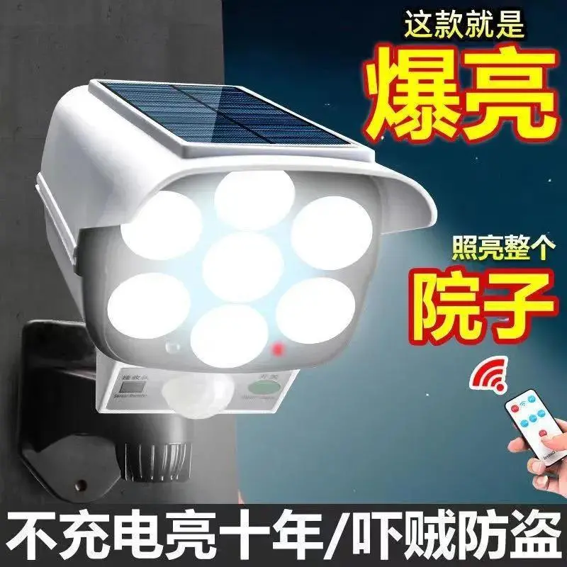 太阳能防贼灯带监控摄像头路灯家用户外庭院灯人体感应超亮照明灯