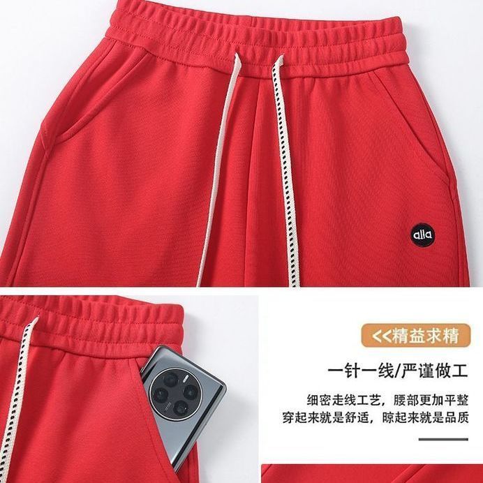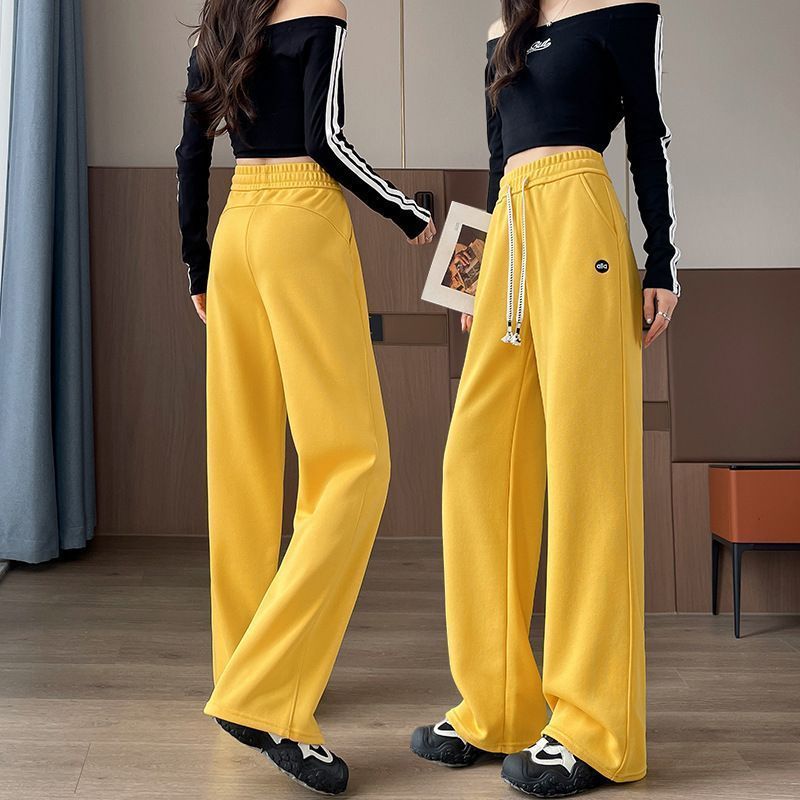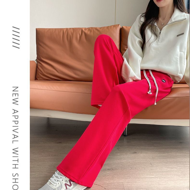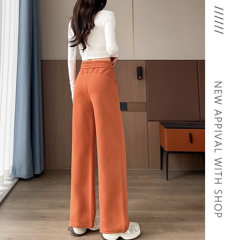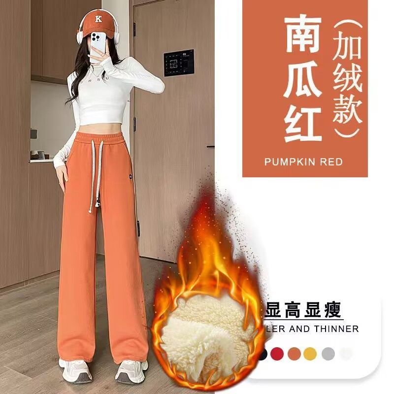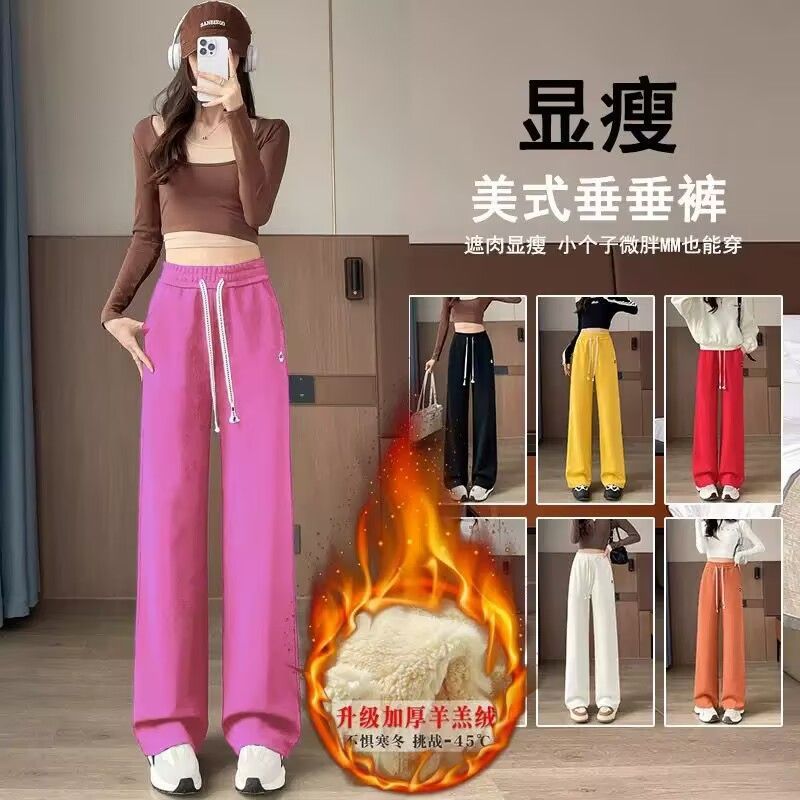 爆款加绒棉质刺绣阔腿裤女大码直筒高腰宽松卫裤垂感窄版休闲长裤