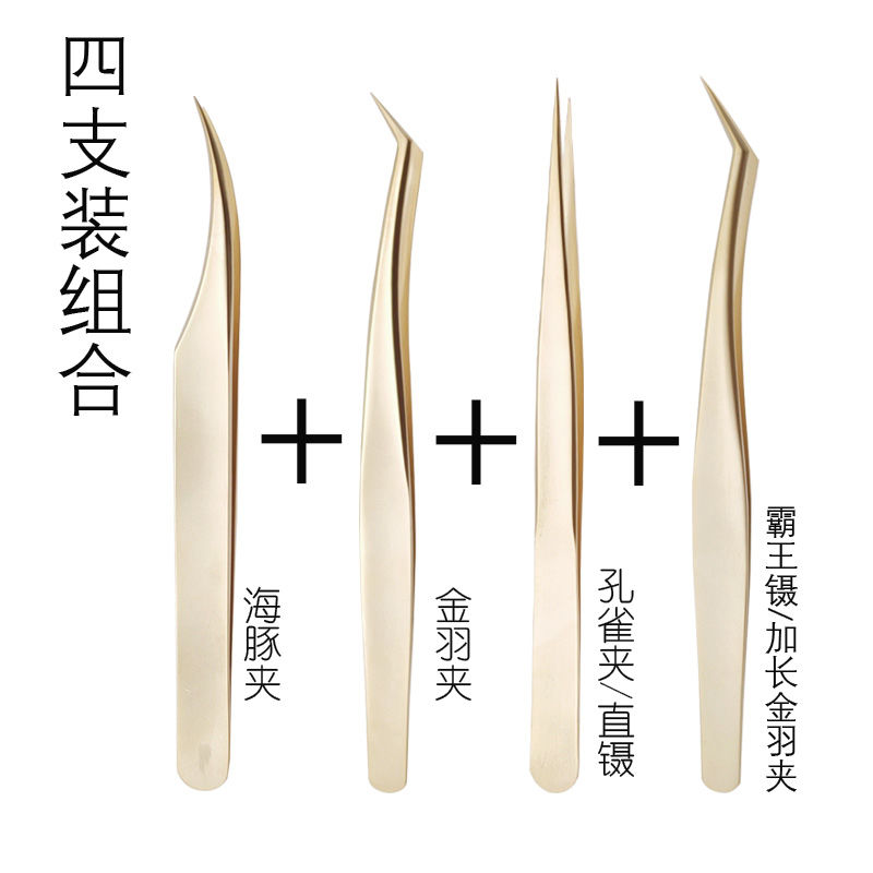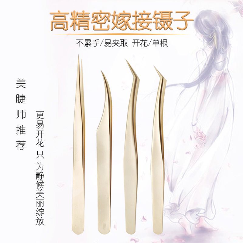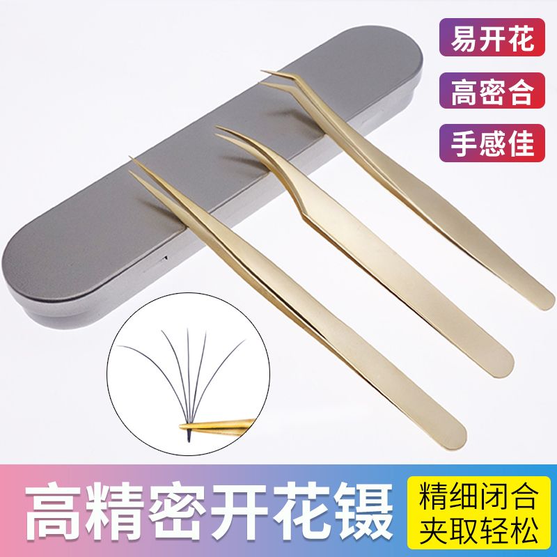 嫁接睫毛镊子高精密开花镊子美睫师夹子加长金羽夹海豚镊夹毛工具