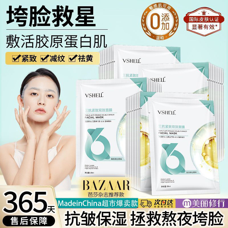 植贝抗皱紧致面膜贴补水保湿去黄提亮肤色水润抗初老抗氧化女熬夜