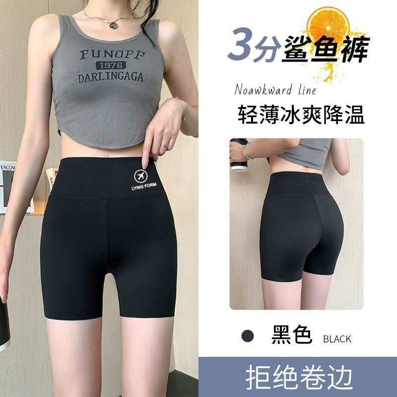 安全裤女冰丝凉感三分打底裤高腰收腹提臀防走光上托短款鲨鱼裤子