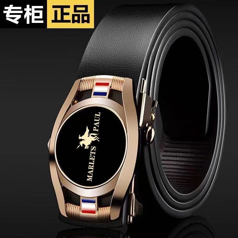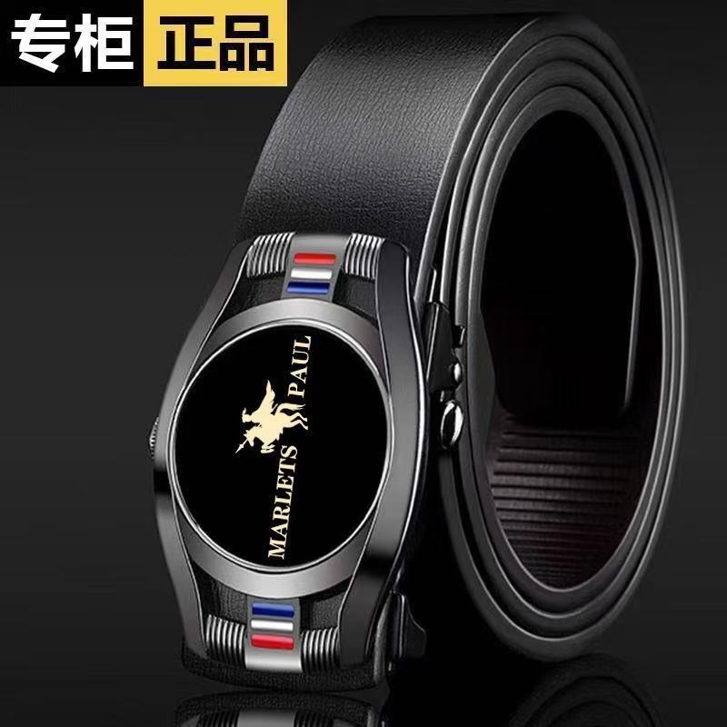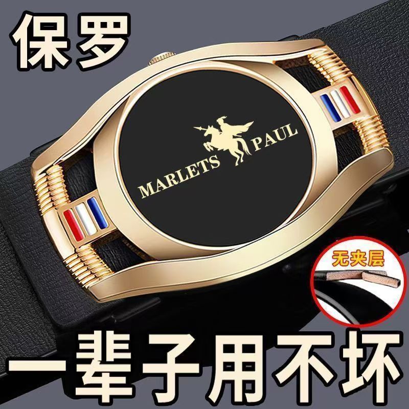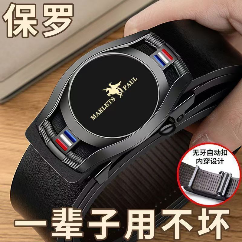 买一送一保罗POLO皮带男真皮无牙自动扣腰带牛皮裤带牛仔裤带商务
