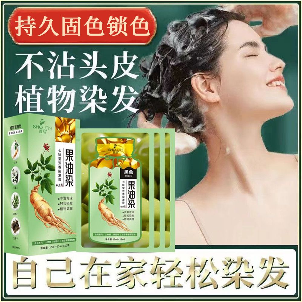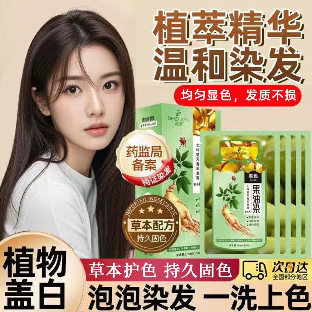 首品果油染独立袋装泡泡染发染发剂植物萃取男女通用在家遮盖白发