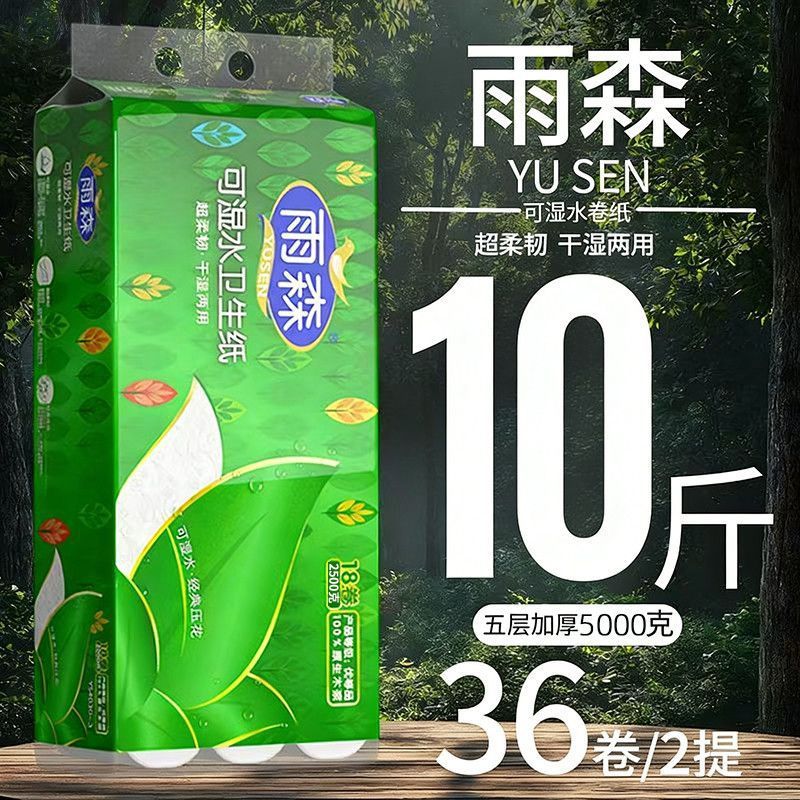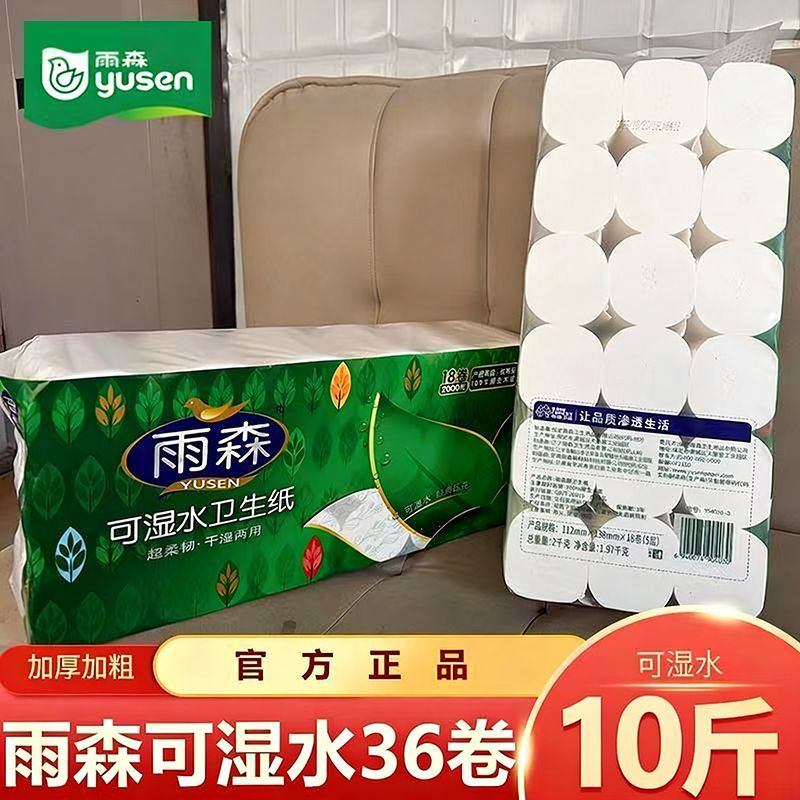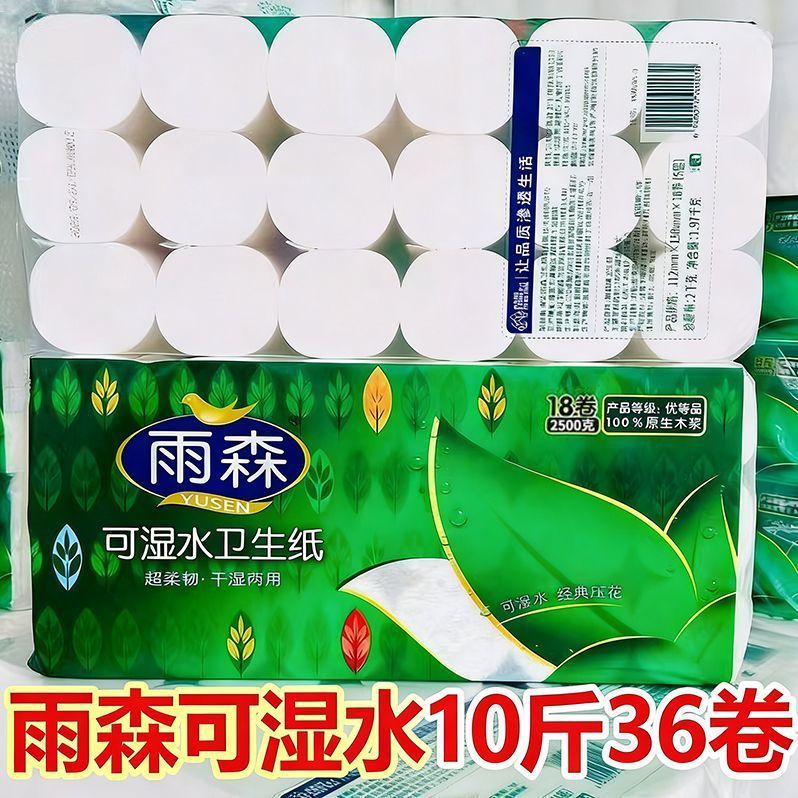 【10斤36卷】雨森木浆卫生纸商超同款可湿水无芯卷纸家用纸巾