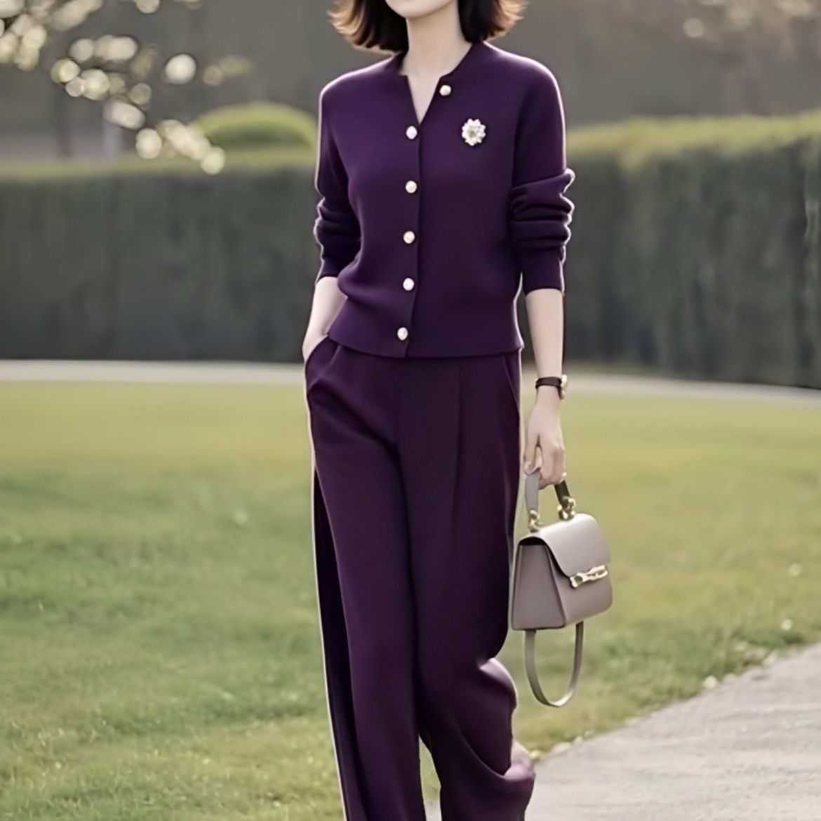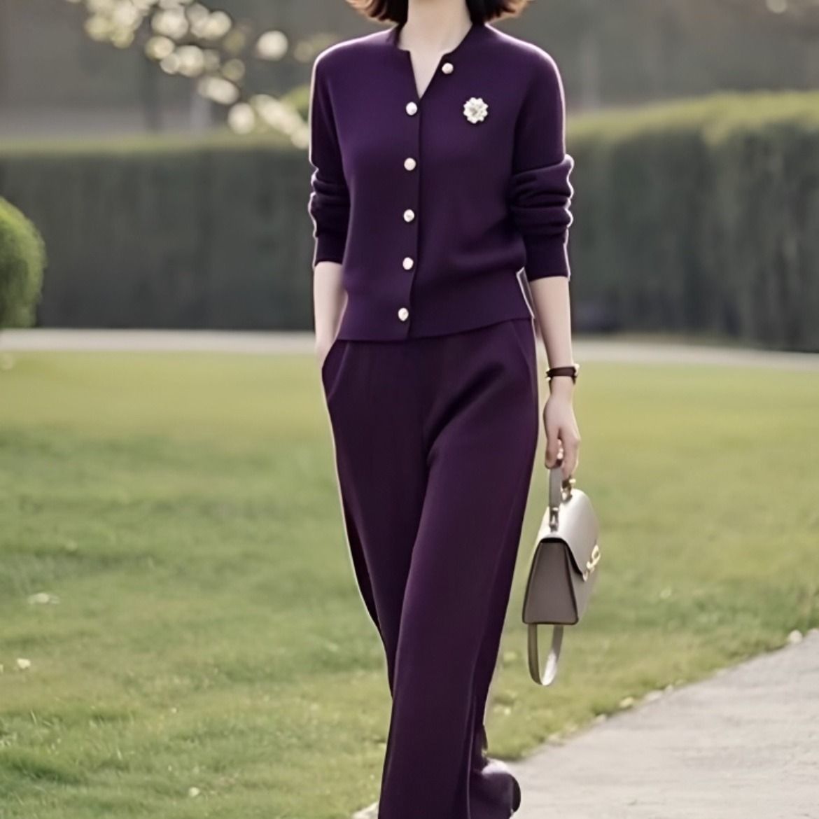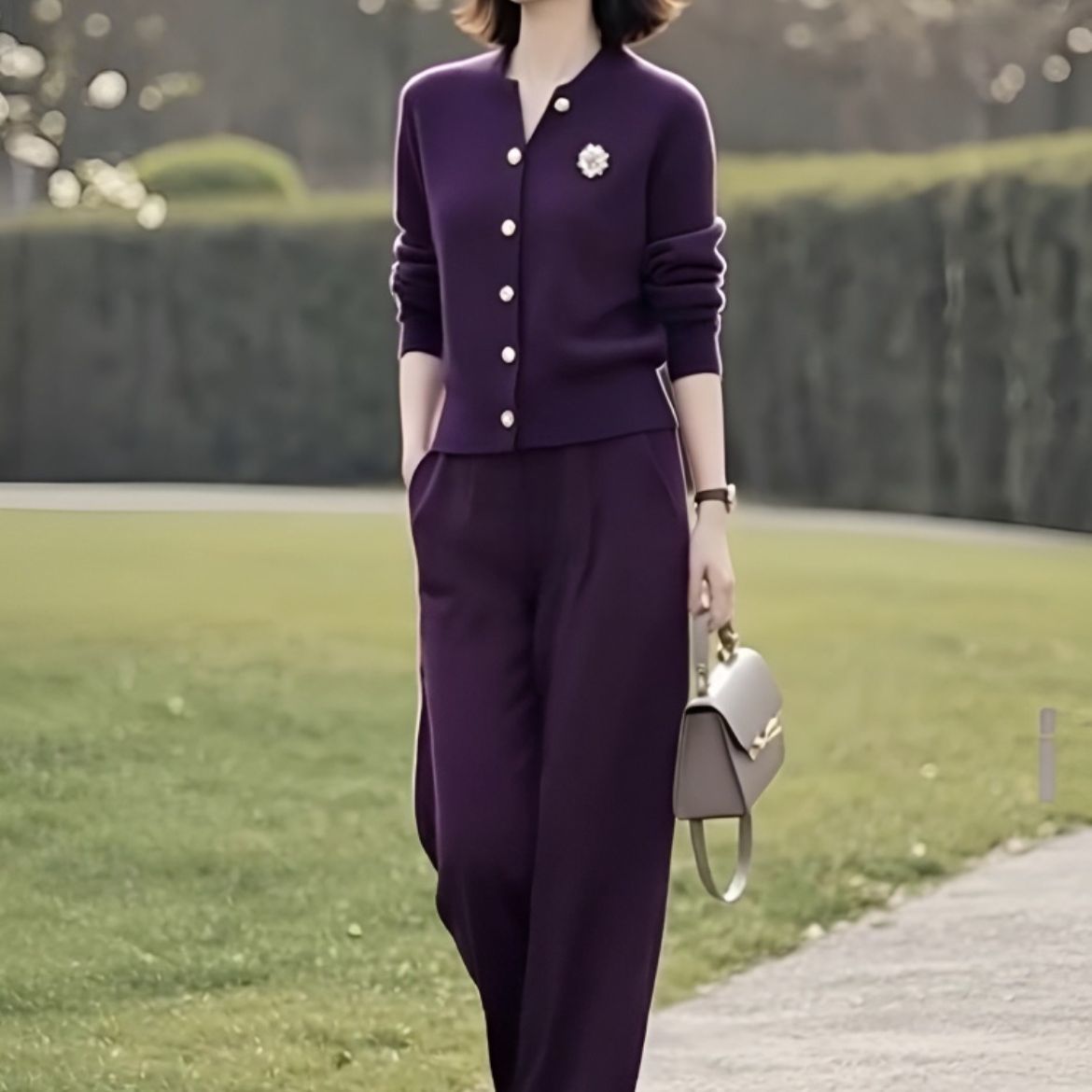 素汐原创定制时尚休闲新款优雅高级毛衣开衫+松紧腰裤子两件套【15天内发货】
