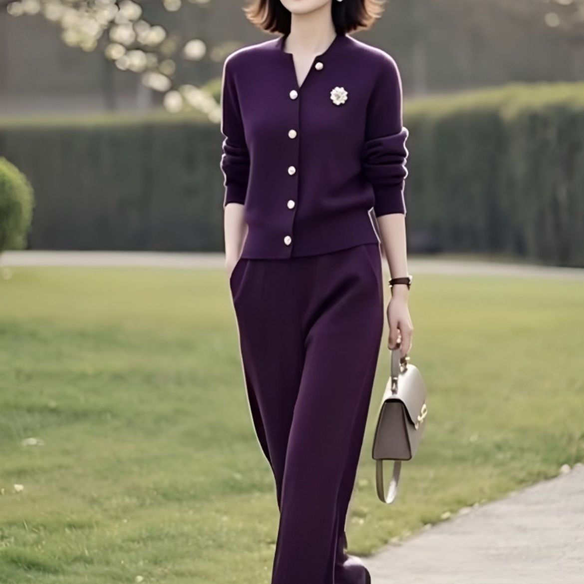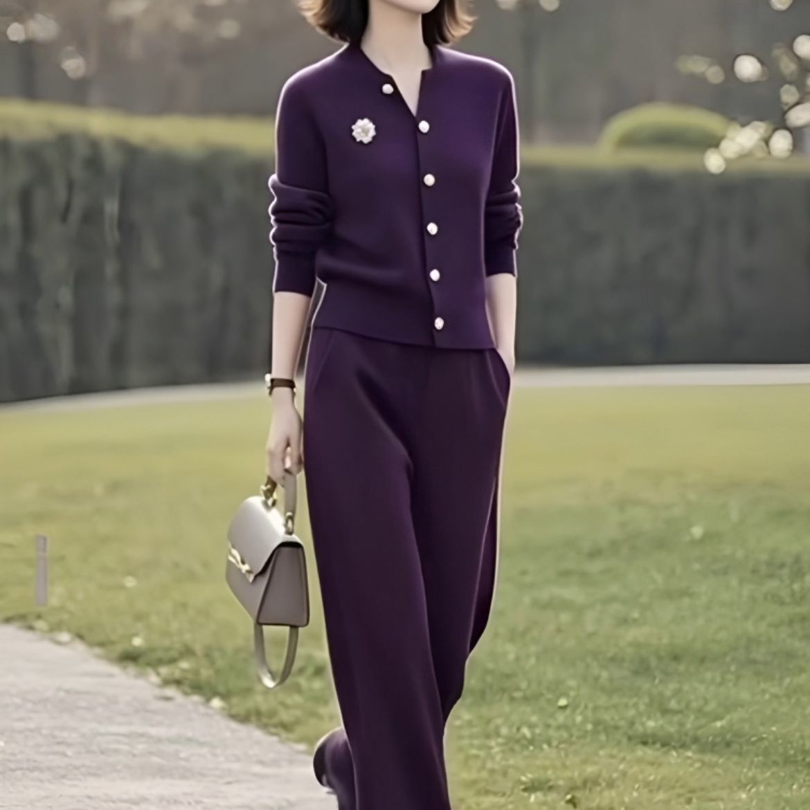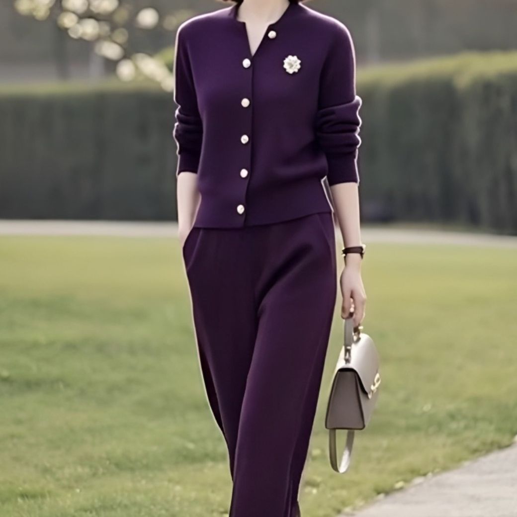 素汐原创定制时尚休闲新款优雅高级毛衣开衫+松紧腰裤子两件套【15天内发货】