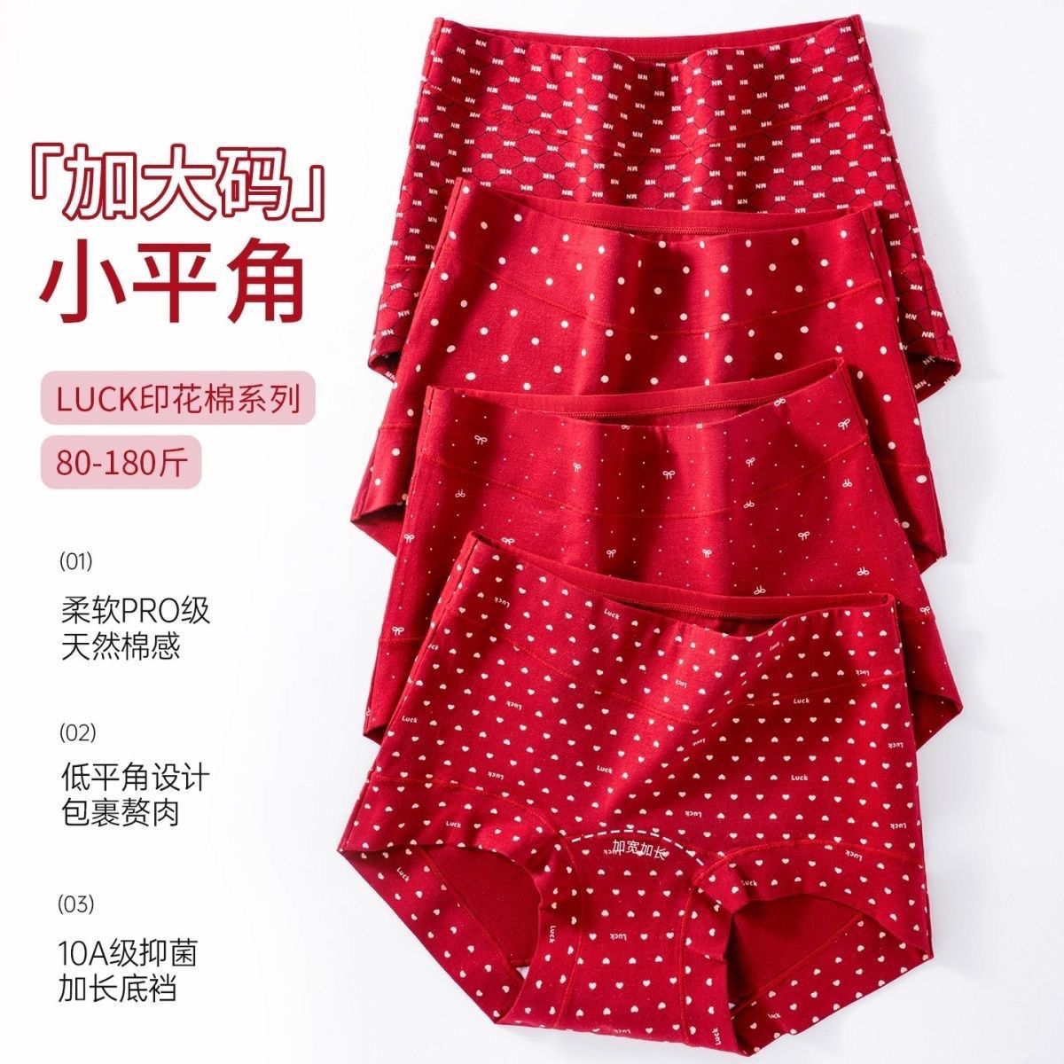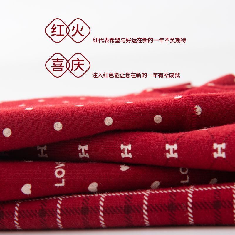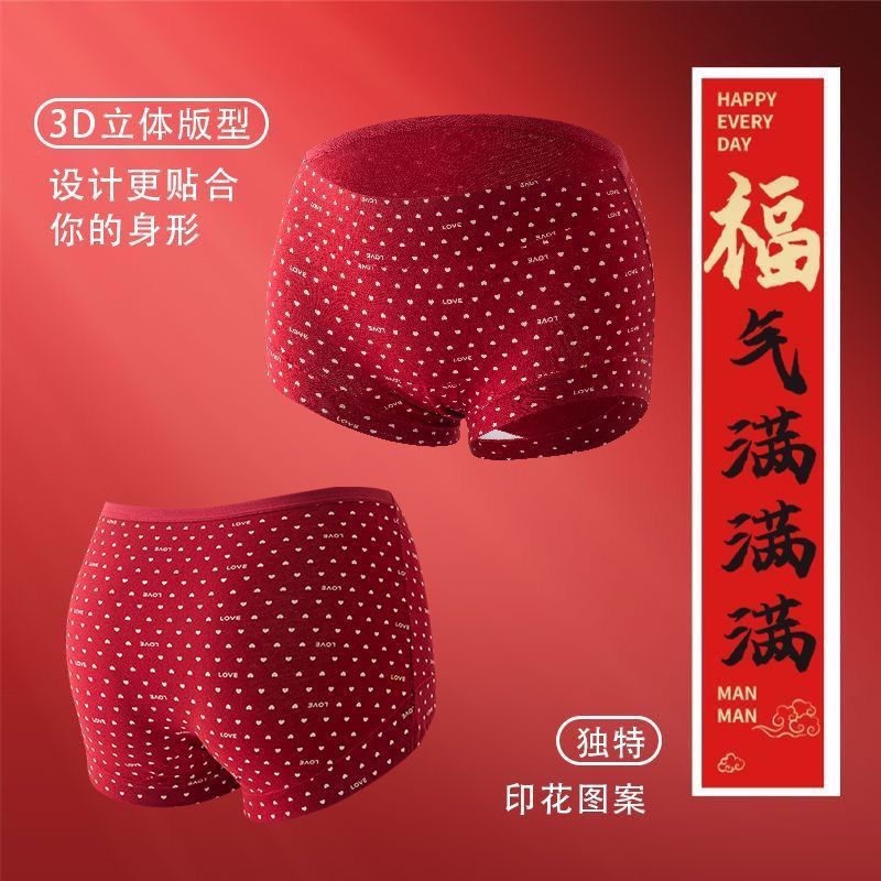 中高腰内裤女士红色纯棉本命年结婚喜庆大码平角全棉加长裆内裤女