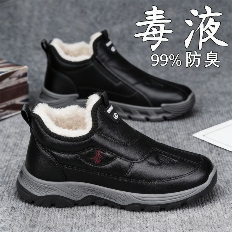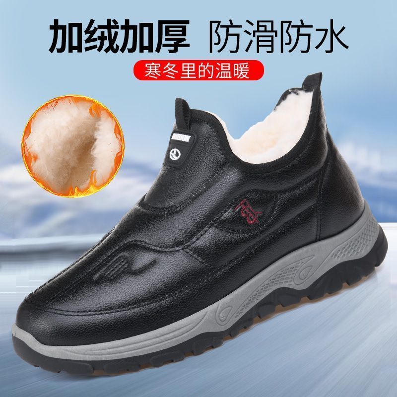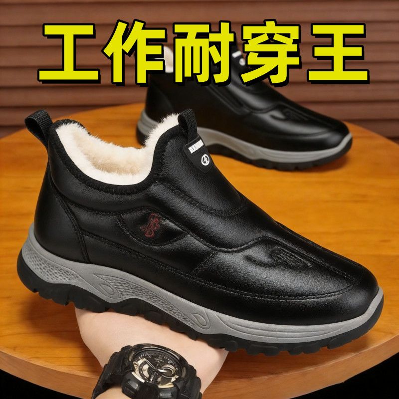 2025冬季新款男士休闲棉鞋加绒加厚雪地防滑软底保暖爸爸老人