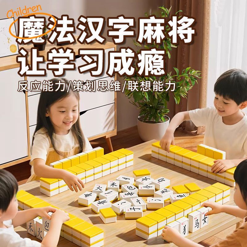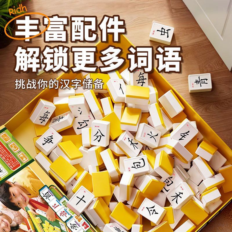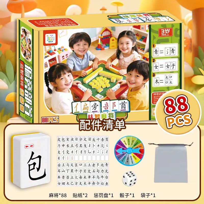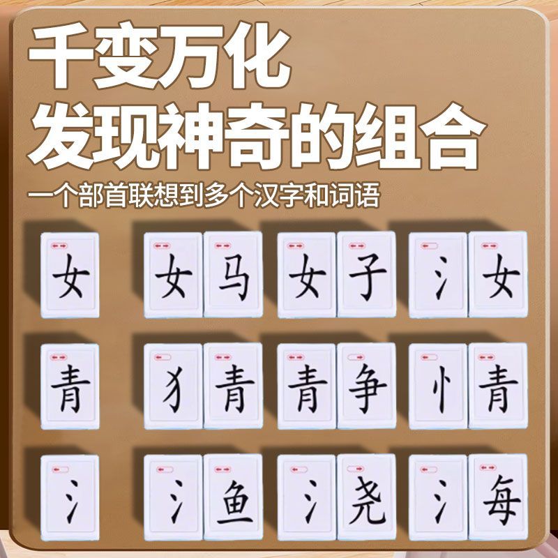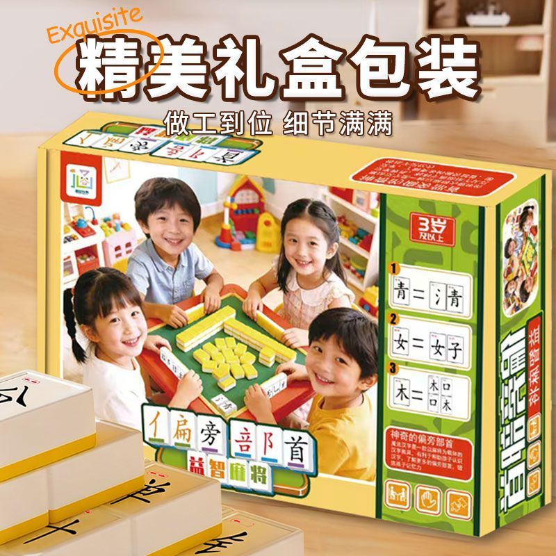 新年礼物】汉字麻将亲子互动游戏偏旁部首益智男孩女孩小学识字认