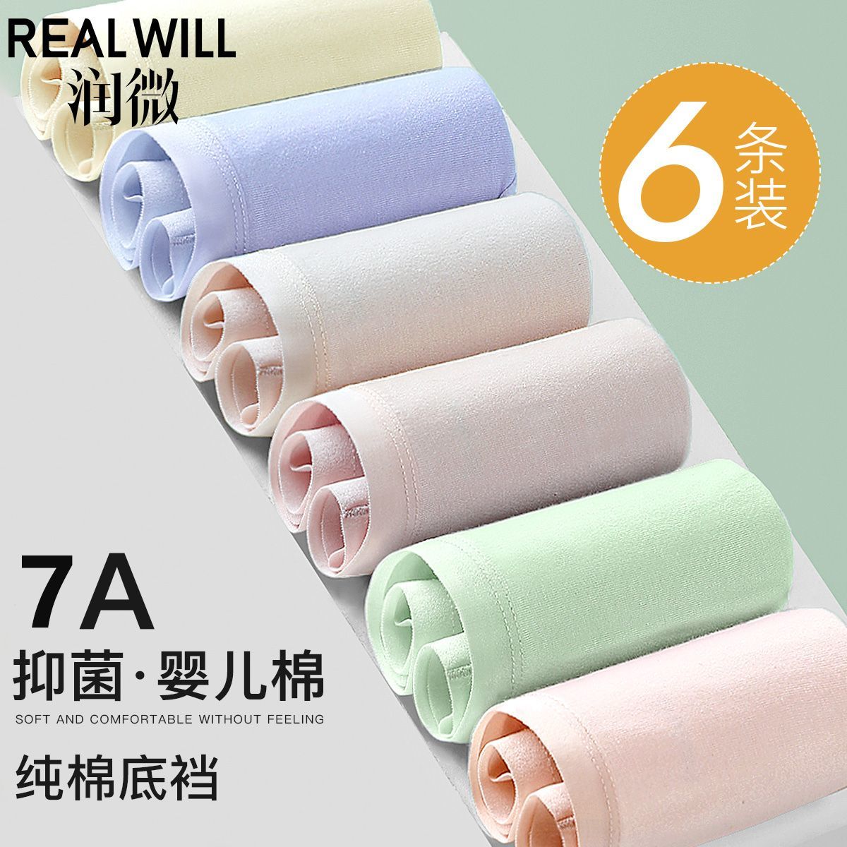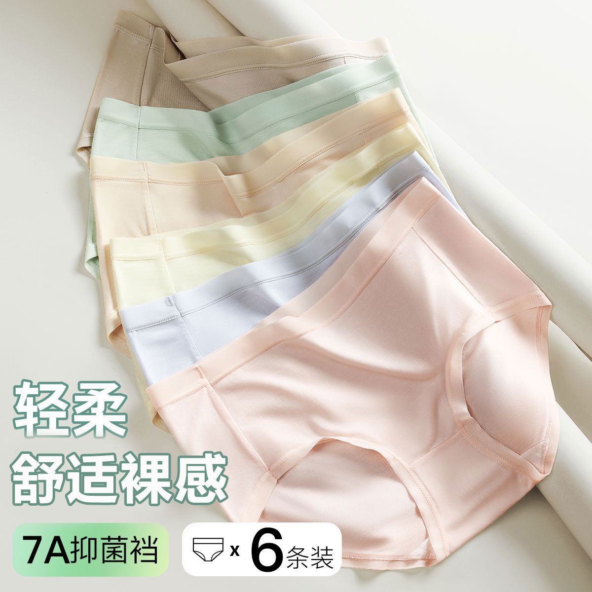 润微6条装内裤女士裸感7A抑菌抗菌亲肤透气无痕柔软三角裤女士
