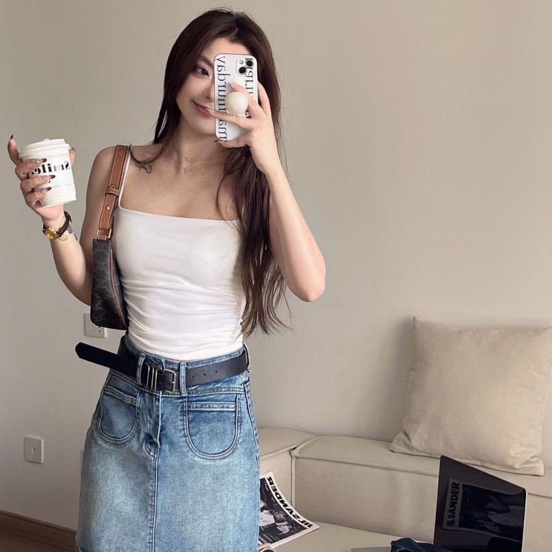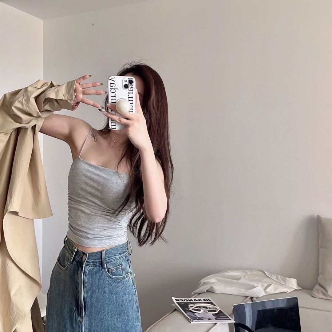 吊带背心女带固定胸垫外穿内衣舒适弹力褶皱显瘦修腰运动文胸抹胸