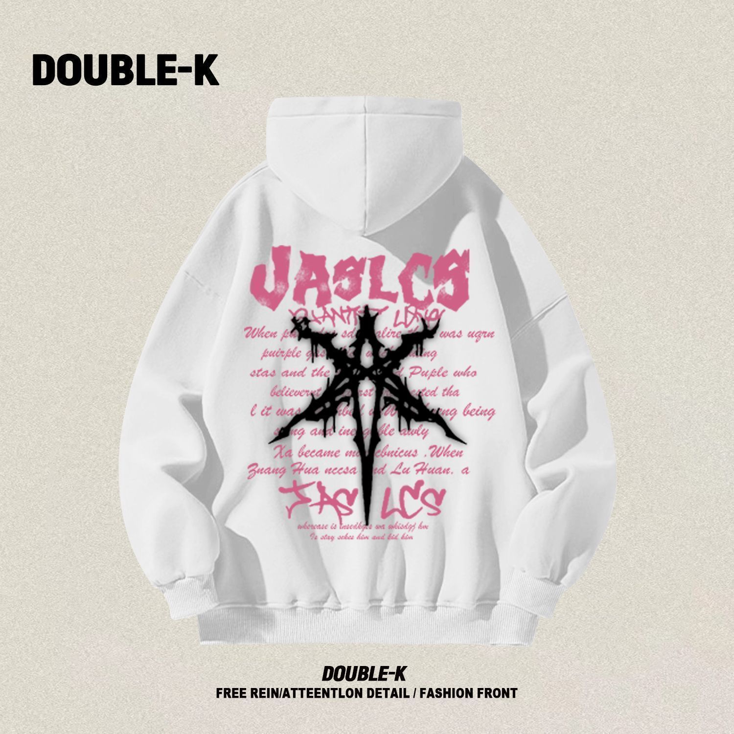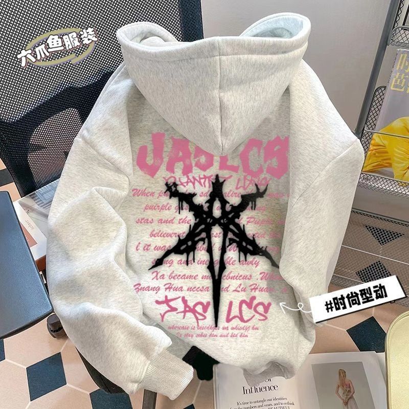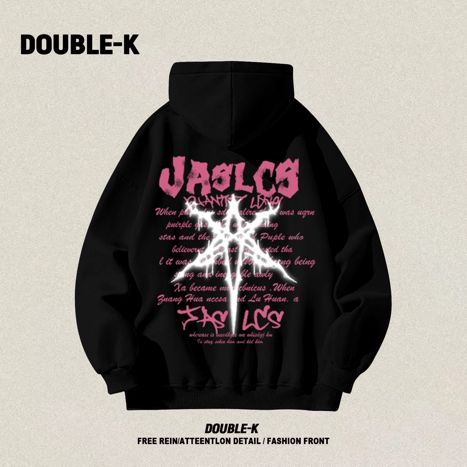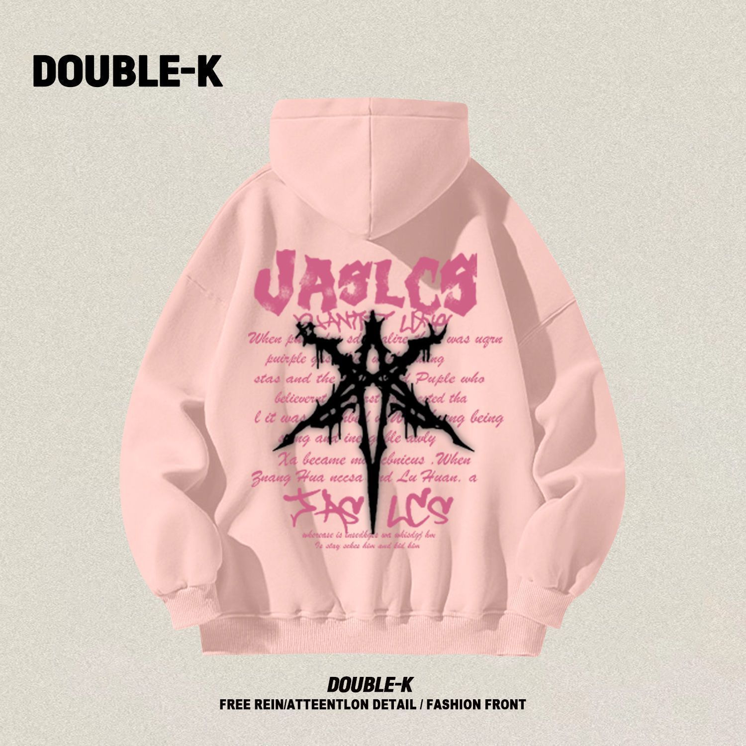 美式高街嘻哈六芒星字母设计连帽卫衣男女秋冬款街头潮牌宽松外套