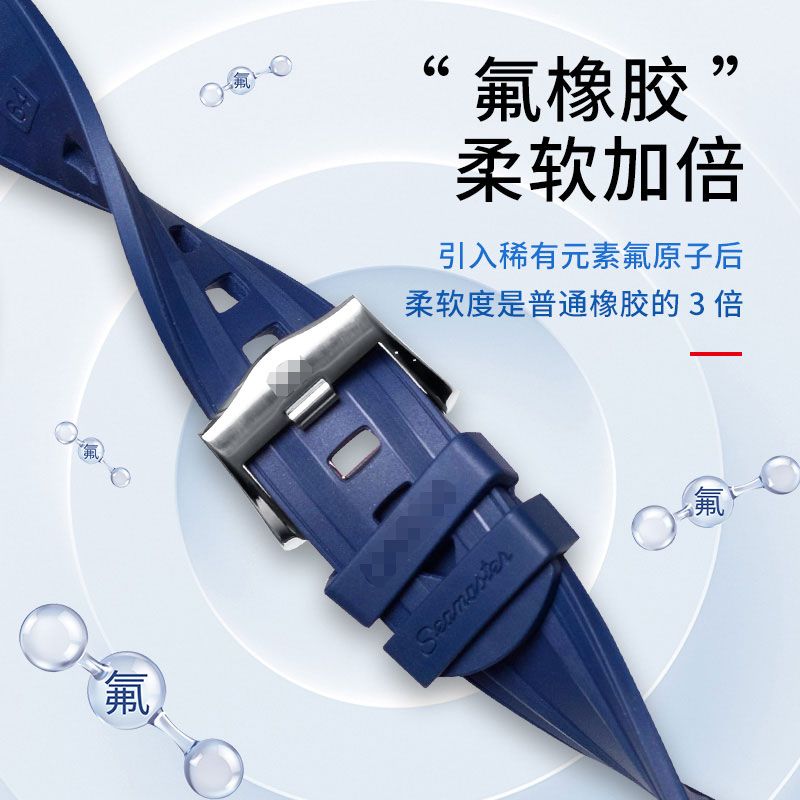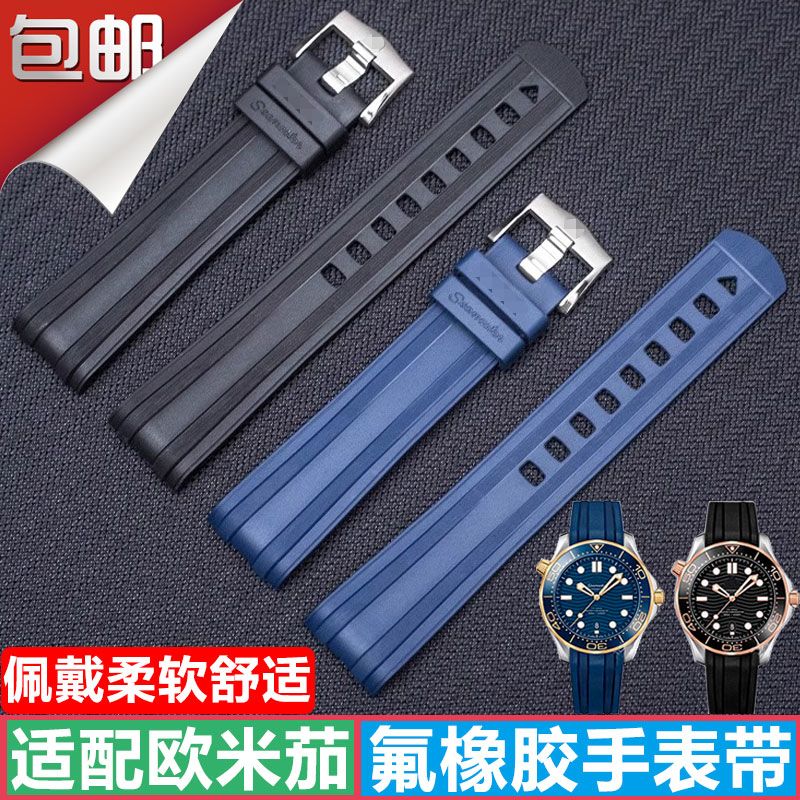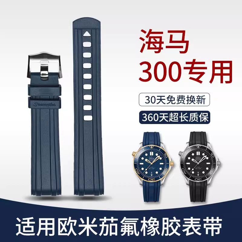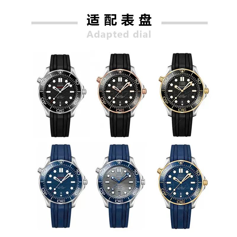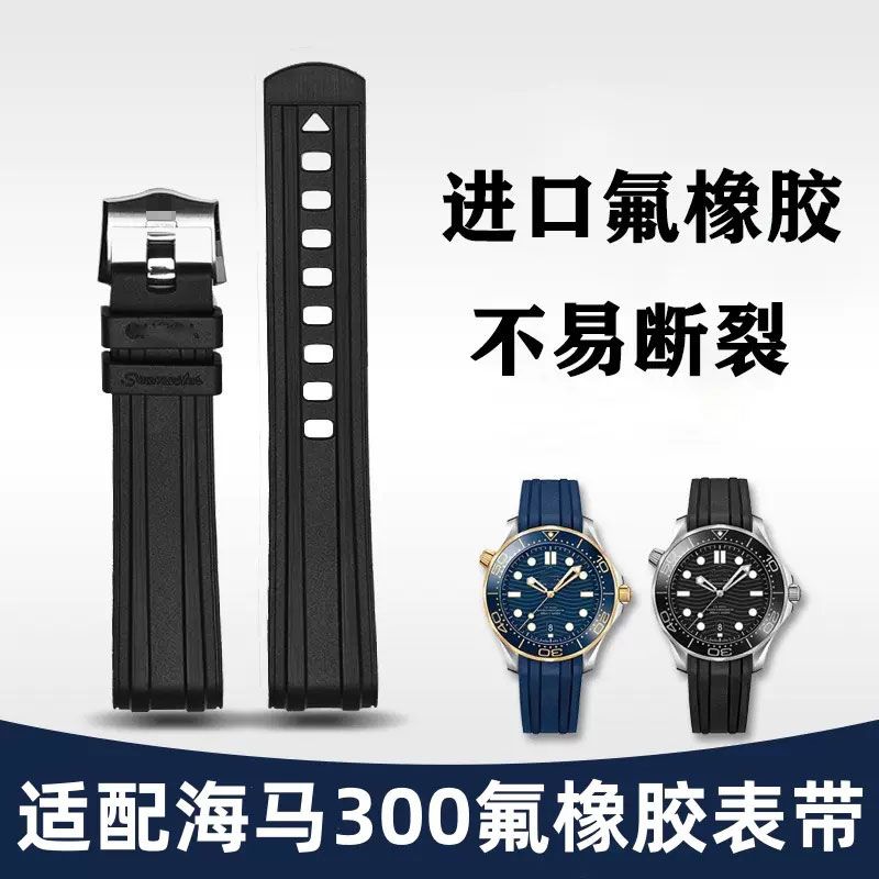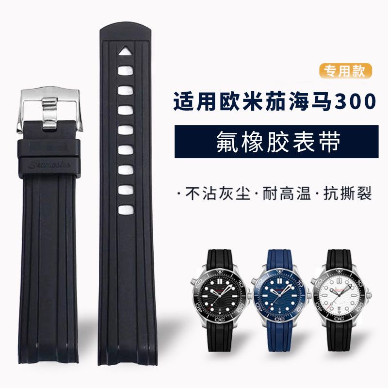 适用欧米茄海马300表带橡胶防水系列胶带手表007男氟橡胶手表带20