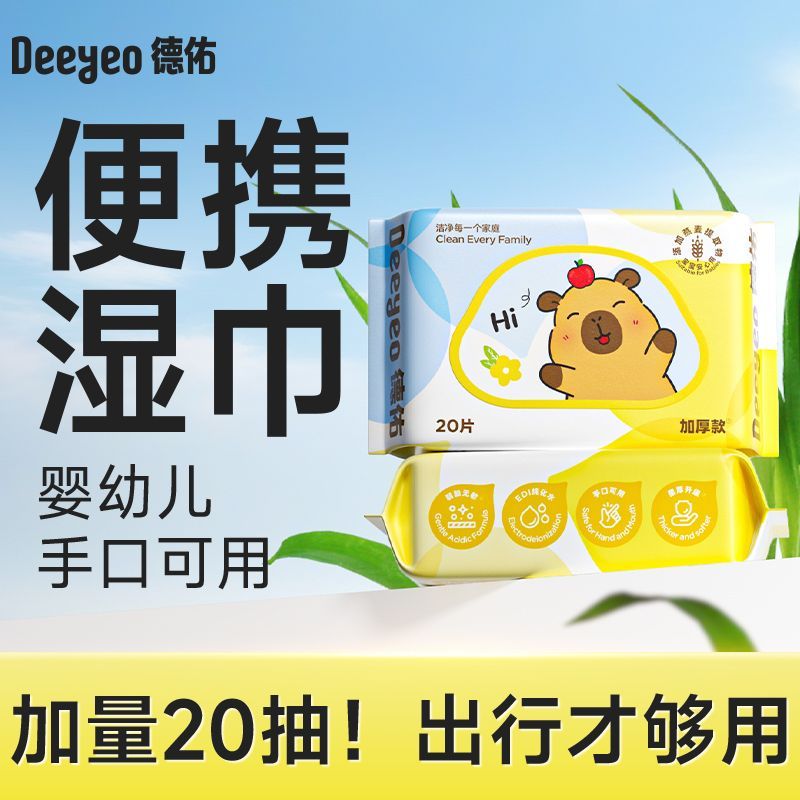 德佑小包湿巾加厚外出便携擦手口专用湿纸巾儿童宝宝户外清洁擦嘴