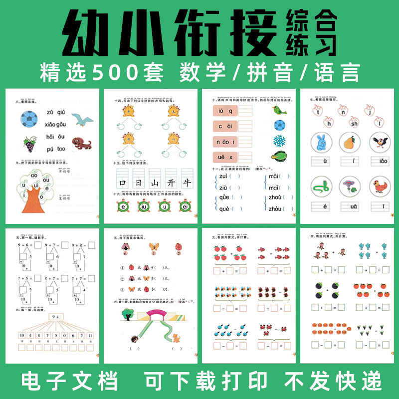 幼小衔接数学拼音语言加减一日一练试卷电子版资料素材打印幼升小