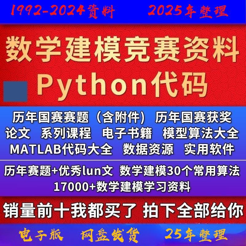 数学建模竞赛资料1992-2023 国赛赛题模型python代码算法MATLAB