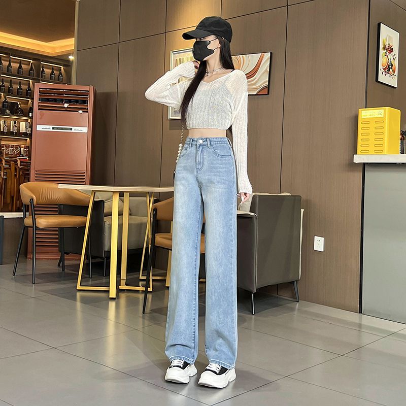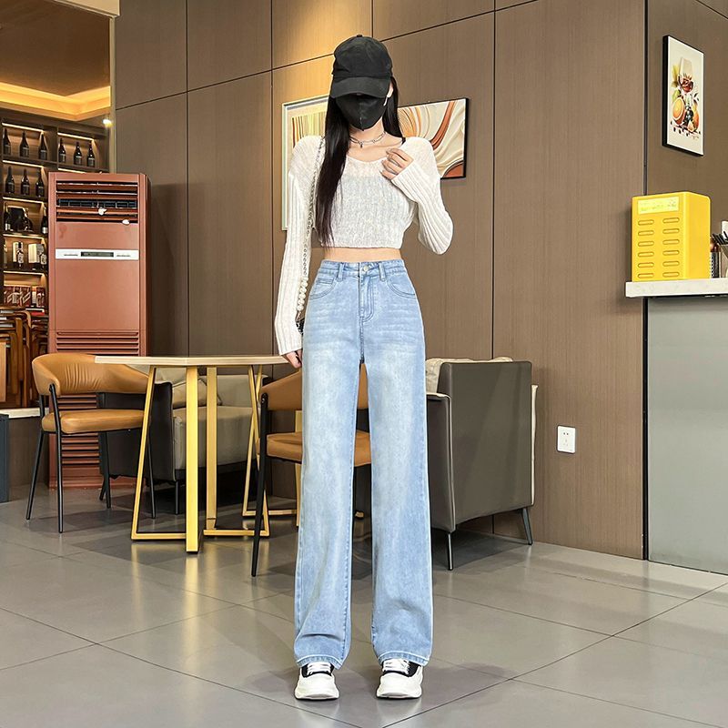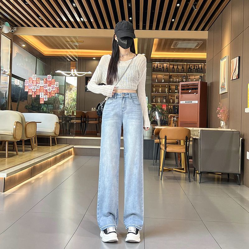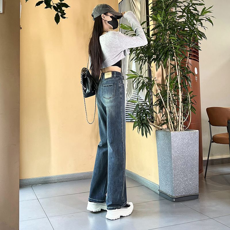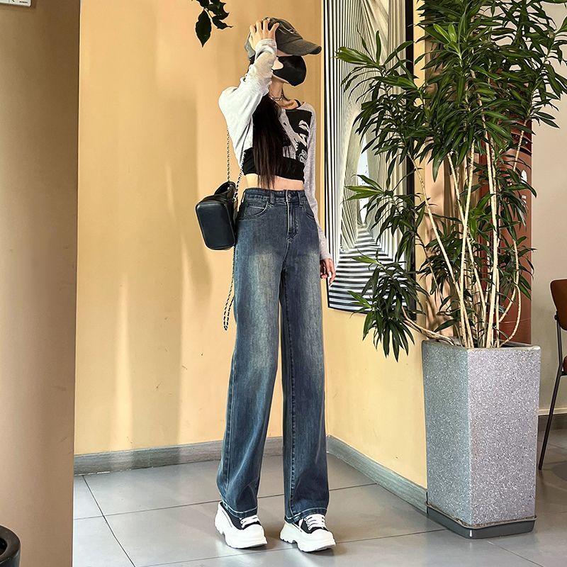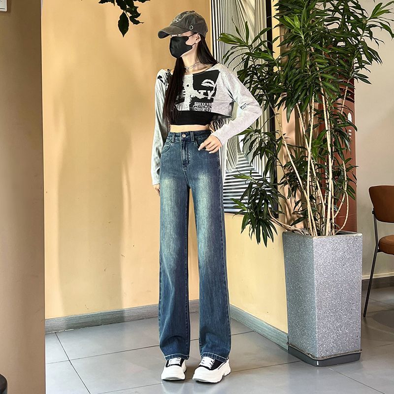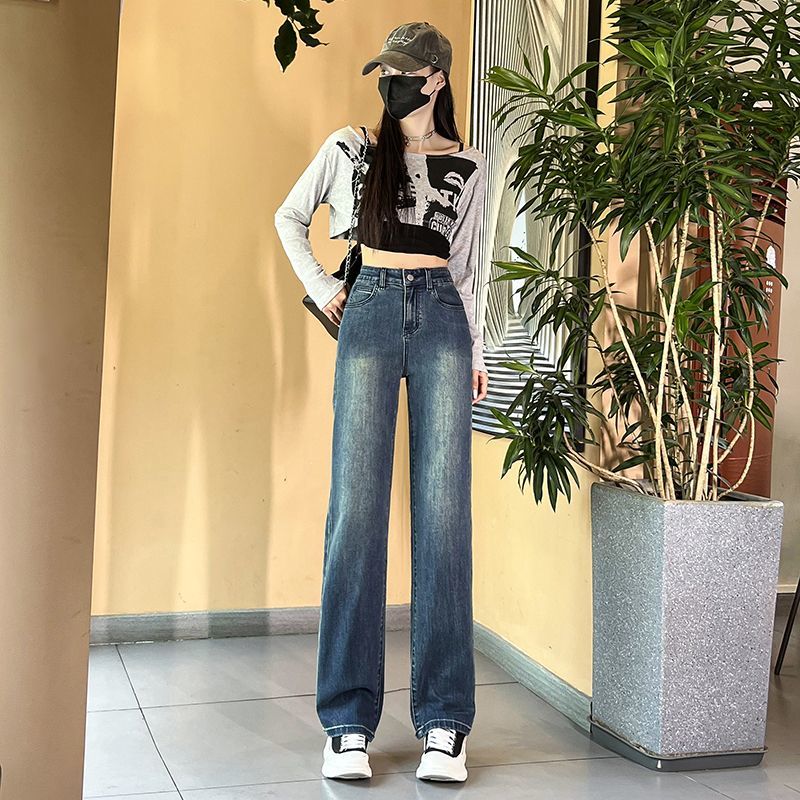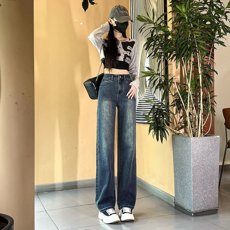 复古牛仔裤春秋2025小个子高腰直筒宽松垂感裤子拖地新款