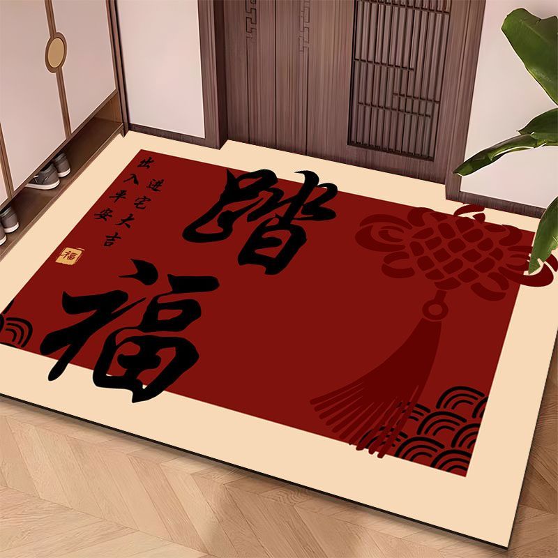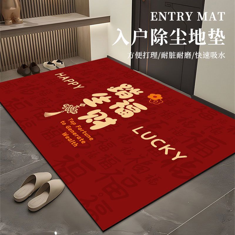 红色喜庆硅藻泥进门地垫入户门门垫吸水防滑耐脏玄关门口地毯地垫